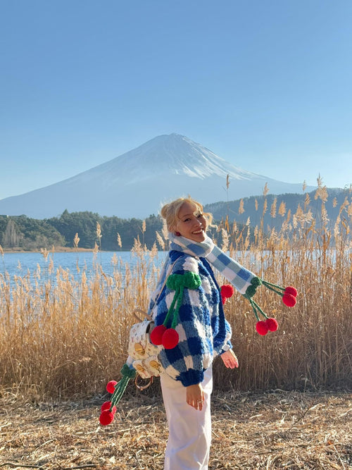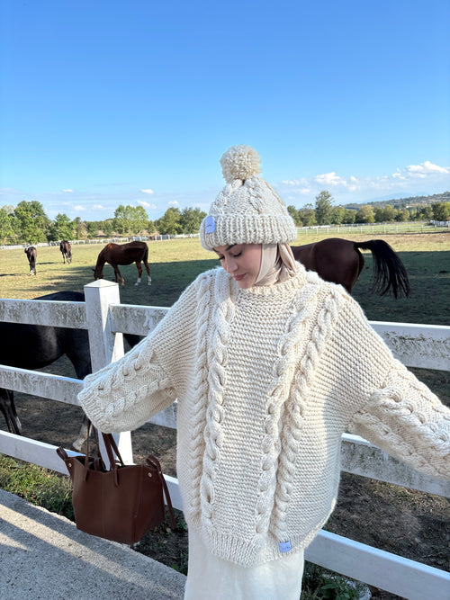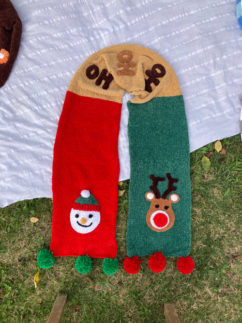 Turuncu - Pembe El Örgüsü Atkı + Bere