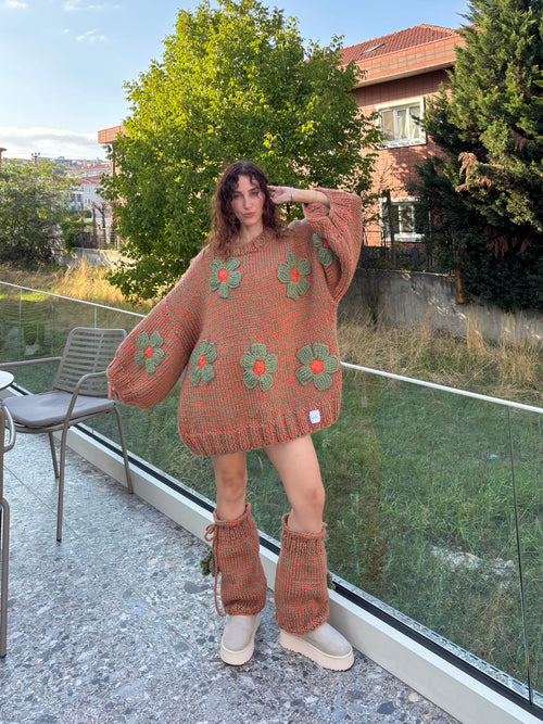 Bloomy El Örgüsü Kazak Elbise + Tozluk